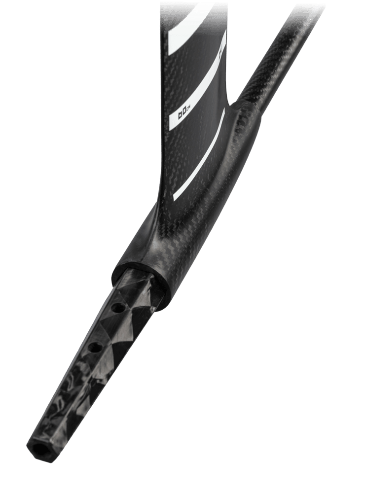 This unique fuselage construction easily handles the highly leveraged opposing flex loads as the mast and wings are directly keyed into the Titanium core, taking your ride to the next level.